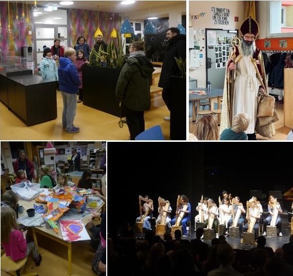 Alle Jahre wieder passiert auch bei uns in der Schule in der Zeit vor den Weihnachtsferien noch eine ganze Menge. Alles kann man da gar nicht erwähnen. Besonders sticht aber natürlich schon unser Tag der offenen Tür hervor, den wir diesmal am 4. Dezember feierten. Geöffnet hatten alle drei Vorschulklassen, je eine Lerngruppe der Klassenstufen 1-3 und 4-6 und alle Fachräume. Die Möglichkeit, sich zu informieren und beraten zu lassen, wurde dabei von vielen Eltern und Kindern gerne genutzt. So wie auch die zahlreichen Mitmachangebote im Werkraum, dem Kunst-Atelier und der Forscherwerkstatt, wo es ganz handfest, kreativ und fröhlich zuging. Besonders beliebt waren auch die Führungen durch die Sporthalle, unsere Kantine, den Musikraum und die Pausenhalle. Bestimmt auch, weil sie von Schülerinnen und Schülern weitgehend eigenständig - und sehr fachkundig! - durchgeführt wurden. Und wer mal aus dem ganzen Trubel drinnen den Weg an die frische Luft suchte, brauchte dort keineswegs zu frieren, denn auf dem Schulhof spendete eine Feuerschale Licht und Wärme.